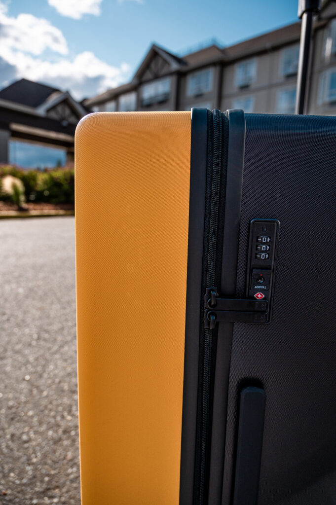 - Bold design: The yellow and black colour combo made it easy to spot at baggage claim (and looks great in our travel photos 😉).